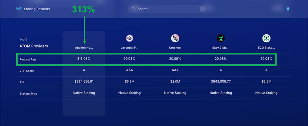 Here is an example of interest that can be earned from staking.