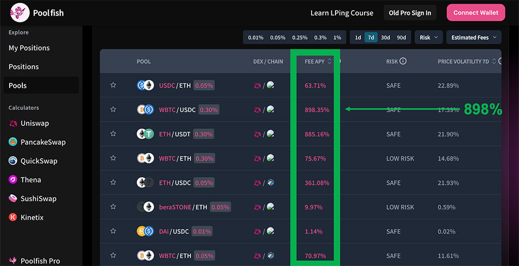 Thanks to a single liquidity pool, Darren made $951.86 in gains in 7 days.
